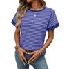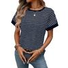 2026 Summer New Women's Casual Round Neck Patchwork Short Sleeve Striped T-Shirt