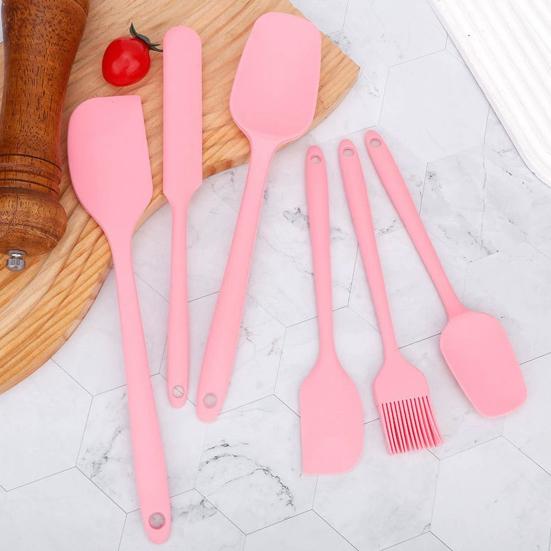 6Pcs Silicone Spatula Set Food Grade Cooking Utensils Set Non-Slip Heat Resistant Flexible Kitchen Tools for Baking Stir-Frying