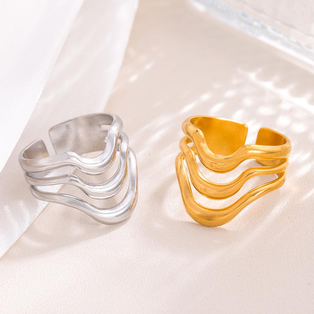 18K Gold Stainless Steel Retro Geometric Open Ring