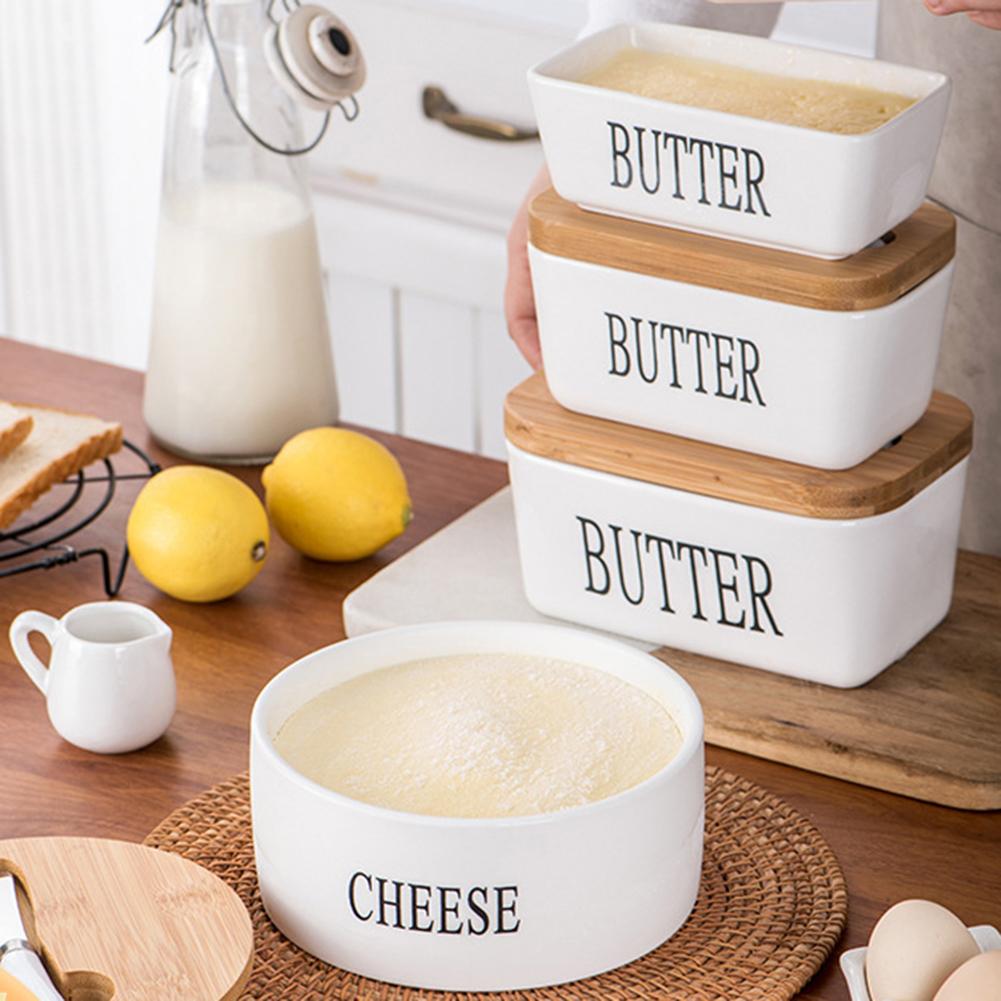 Ceramic Butter Dish With Lid Knife Butter Stick Holder Cheese Dessert Cake Tray Butter Stick Keeper Tray Home Container Butter Dish