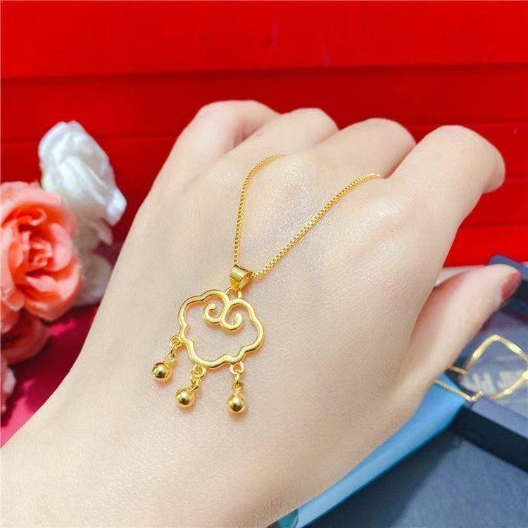 Versatile Auspicious Cloud Gold Lock Necklace with Bell Pendant - New Chinese Style for Women 2026
