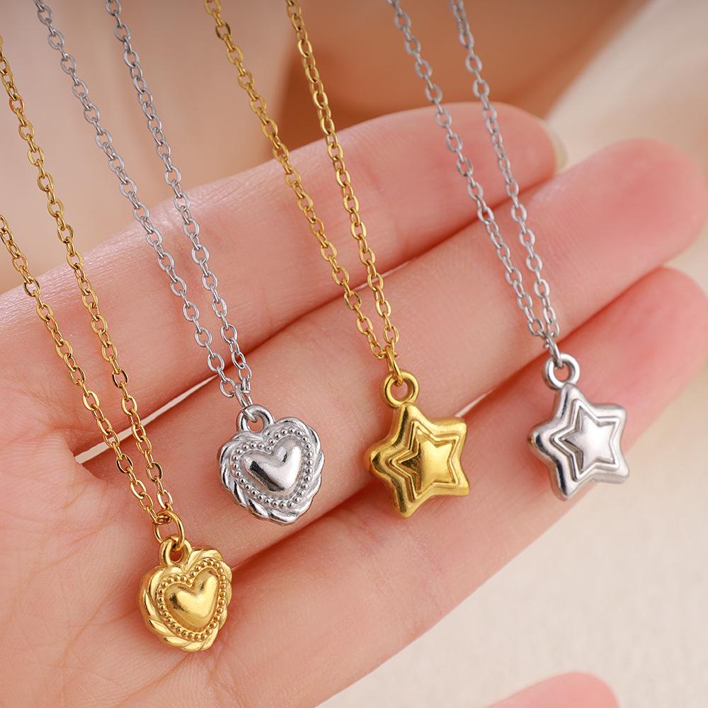 Retro Heart and Star Stainless Steel Pendant Necklace with Color Retention