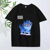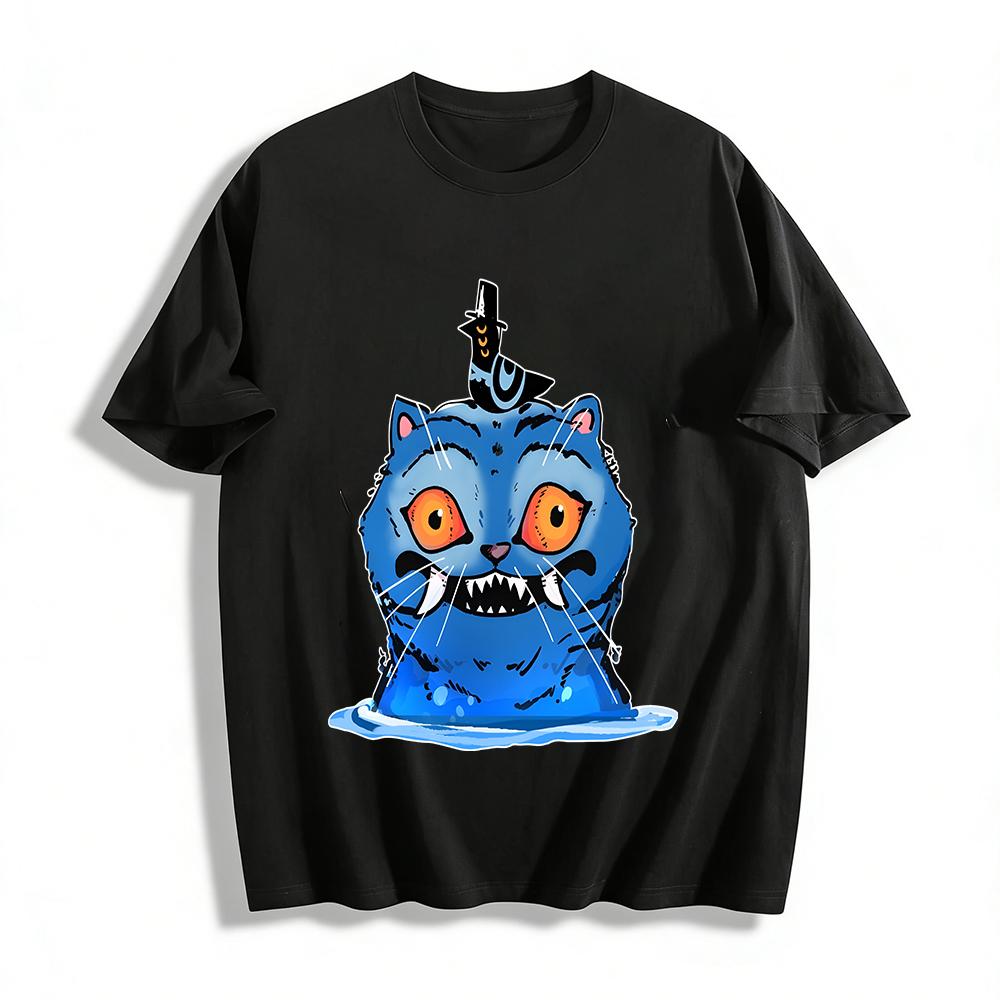 Weird Blue Cat Water Monster Print Casual Top Unisex Loose Breathable Daily T-Shirt Pure cotton T-shirt