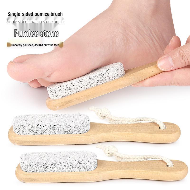 Pumice Stone Foot Scrubber with Wooden Handle for Calluses and Rough Skin Exfoliation