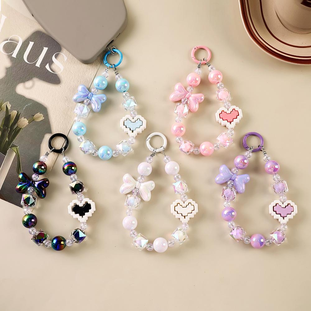 Candy Heart Beaded Phone Lanyard & Bow Charm Keychain Gift