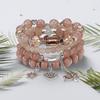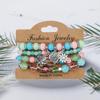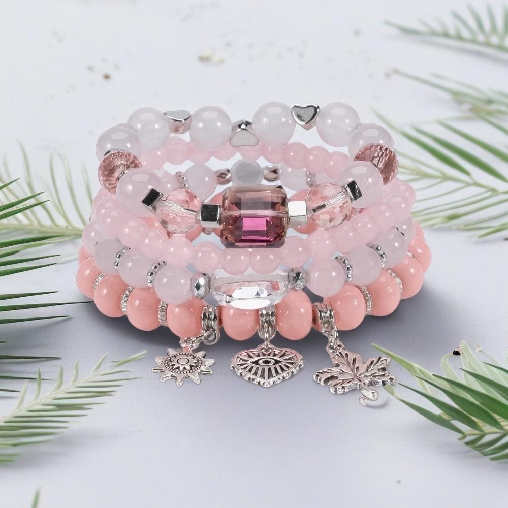 Bohemian Beaded Bracelet Set with Hollow Heart and Leaf Pendants
