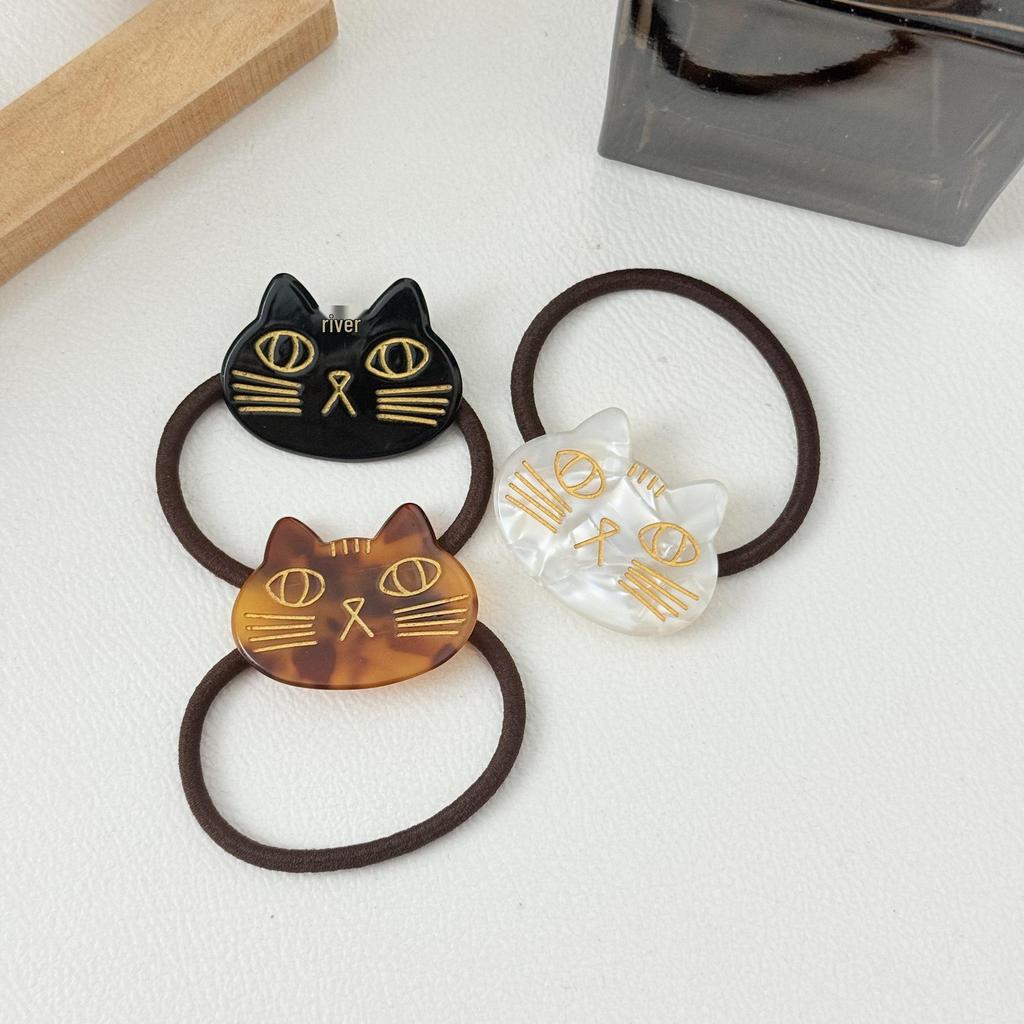 Cute Cat Acetate Hair Clip and Tie Set - 4.3cm Sweet Cartoon Hair Accessories for Children