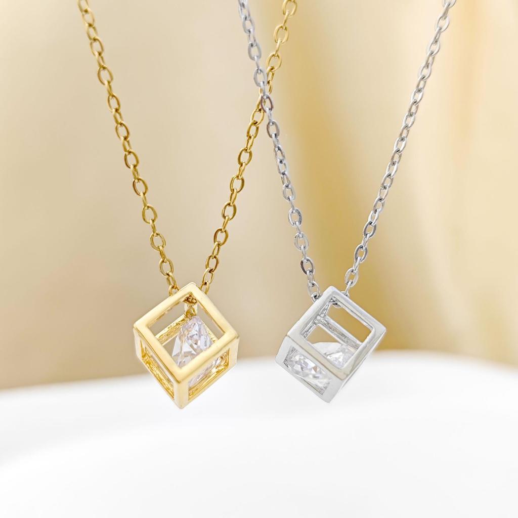 Gold-Plated Korean Zircon Square Pendant Necklace for Women - Trendy Clavicle Chain Jewelry
