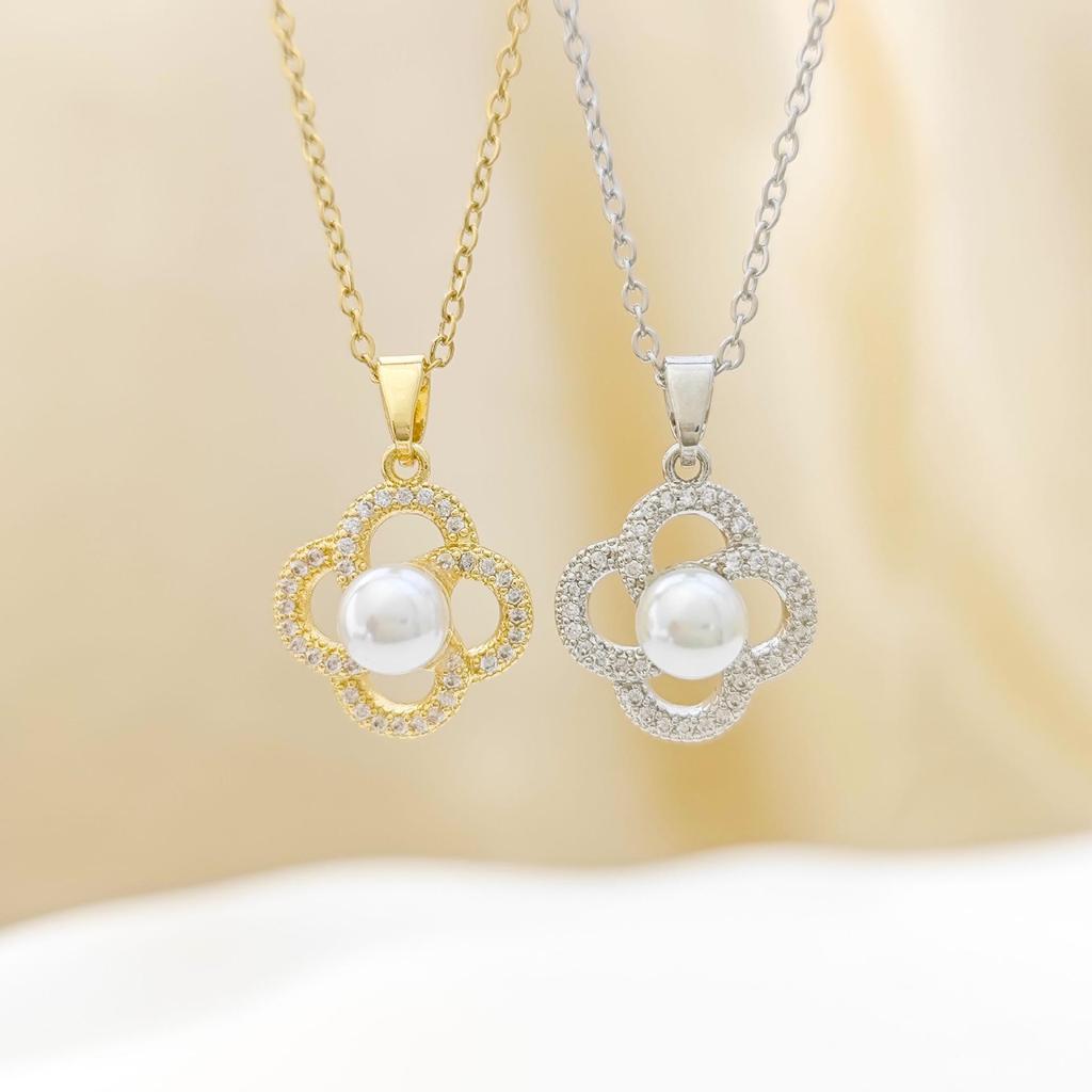 Elegant Pearl Four-Leaf Clover Necklace - Women's Luxury Clavicle Chain