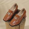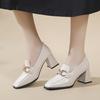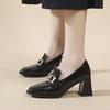 נעלי עקב גבוהות עם עקב עבה לנשים באביב ובסתיו 2025, נעלי עור קטנות חדשות לנשים, ראש מרובע, פתח נמוך, קישוט מתכת