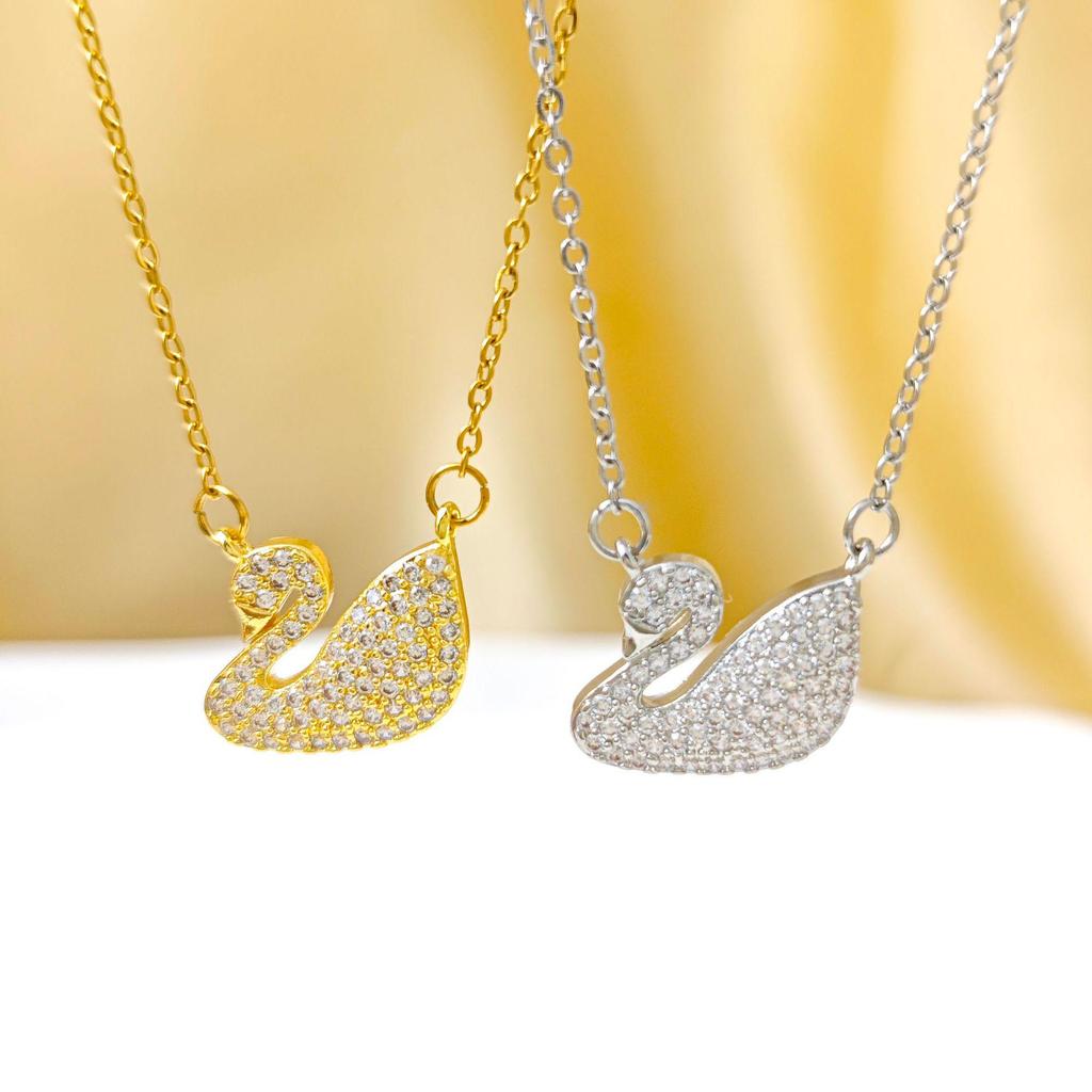 Classic Full Diamond Swan Necklace for Women, Elegant Zirconia Choker, Versatile Titanium Steel Clavicle Chain.