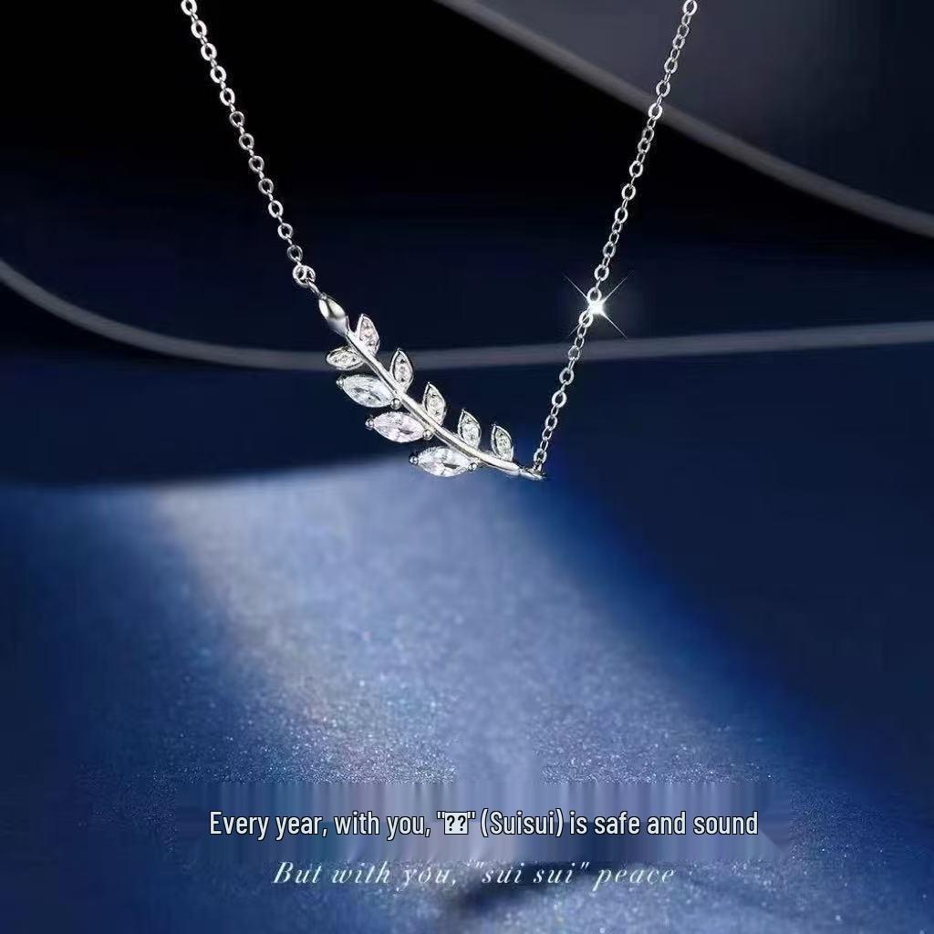 Women's Wheat Ear Necklace with Zircon Leaves - White Copper Collarbone Chain, Internet Celebrity Style, Available for Dropshipping