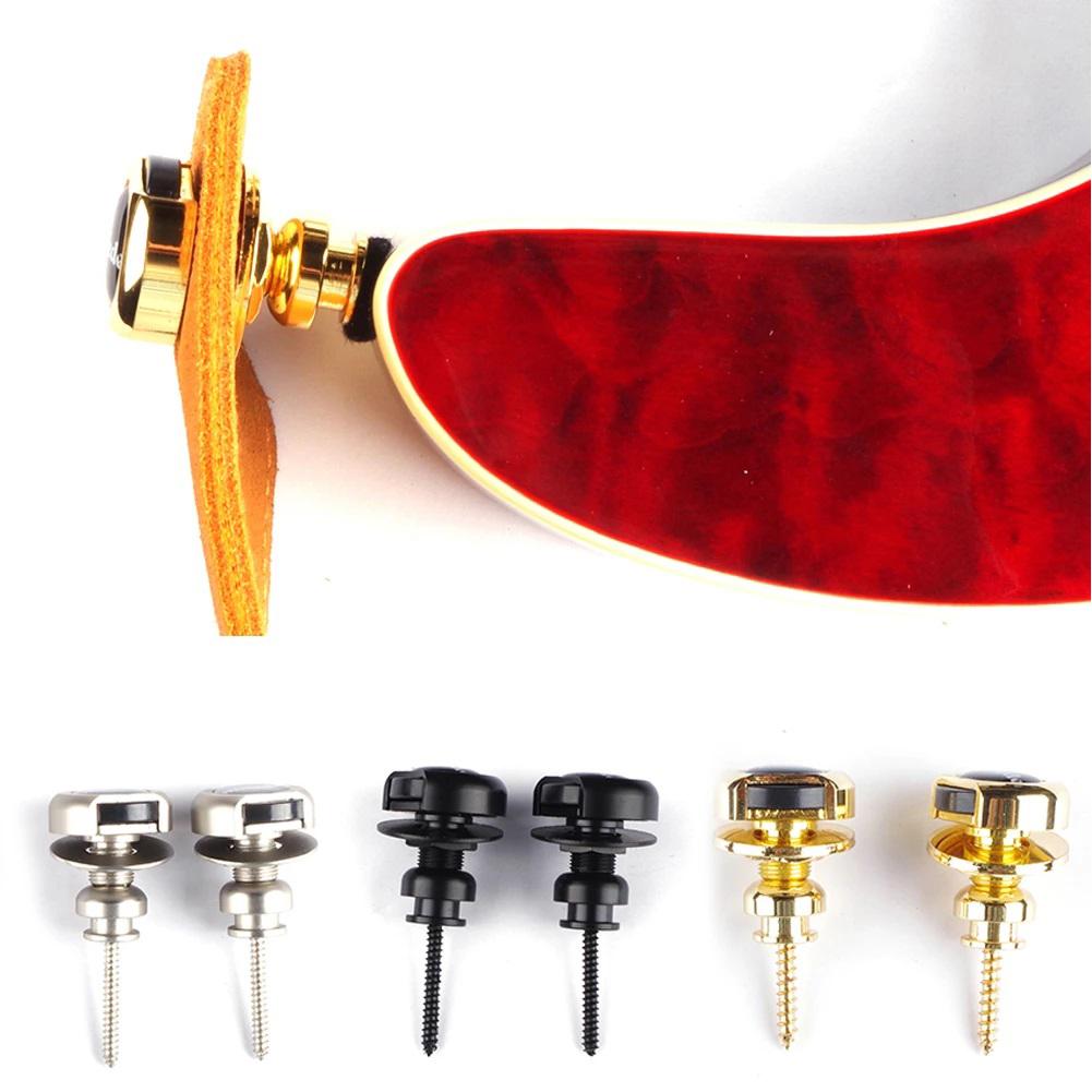 2 Pcs Guitar Strap Buttons Pins Metal End Anti-Rust Guitar Strap Retainer System Quick Release Guitar Strap Button Locks with Mounting Screws for Electric/Bass/Acoustic Guitar