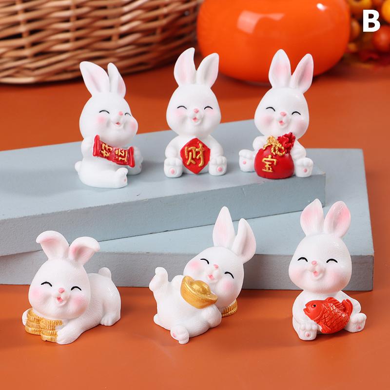4/6Pcs/Set Cute Cartoon Auspicious Rabbit Micro Landscape Resin Crafts Diy Landscaping Decoration Home Gardening Accessories