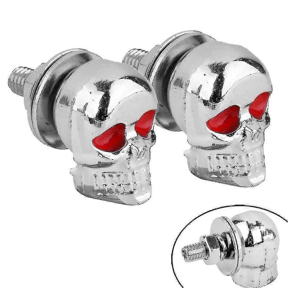 Skull License Plate Frame Bolts Screws Fastener Cap Motorcycle Car Truck Auto2pcs-silver - RIpj