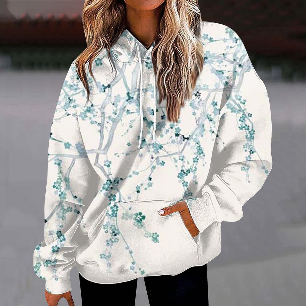 Women's Fashion Loose Casual Daily Long Sleeve Hoodie Floral Print Sweatshirt Top
