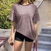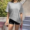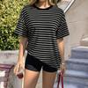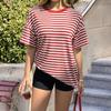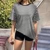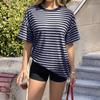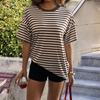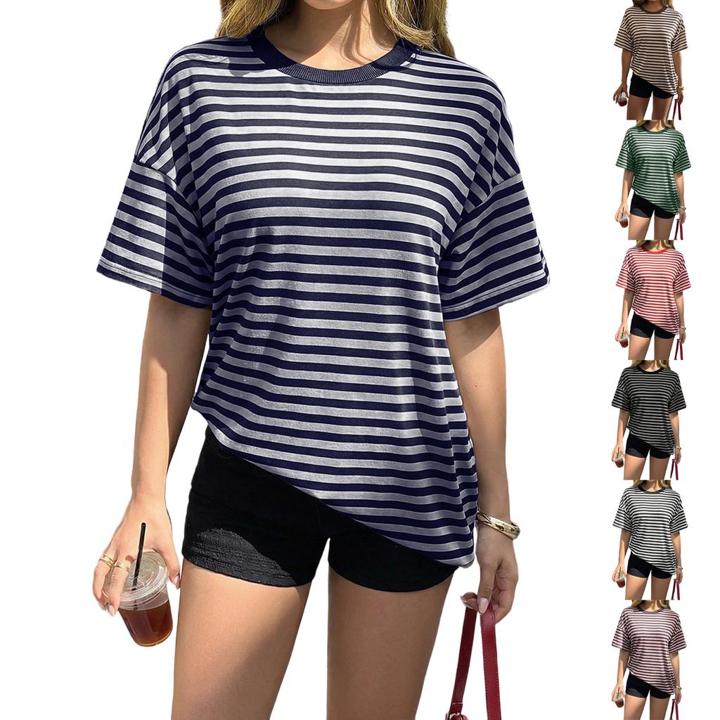 Women's Fashion Striped Round Neck Short Sleeved Casual Loose Fitting Pullover T-shirt Top