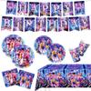 New Blue KPOP Demon Hunters Birthday Party Decorations Set, Disposable Paper Plates Napkins Knife Fork Spoon Tableware Kit