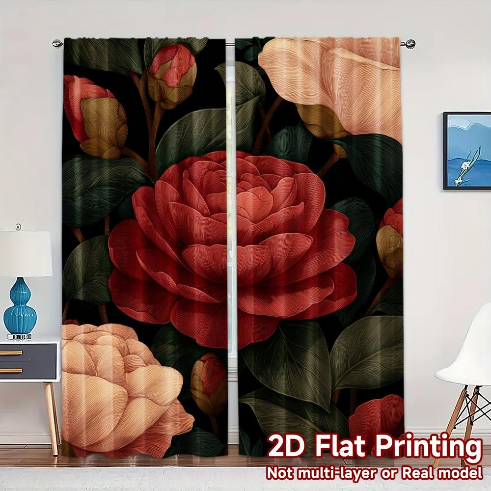 Set Of 2 Flat Printing Curtains Without Rod Floral Rose Arrangement Valentine Is Day Festival Creative Versatile Curtain Polyester