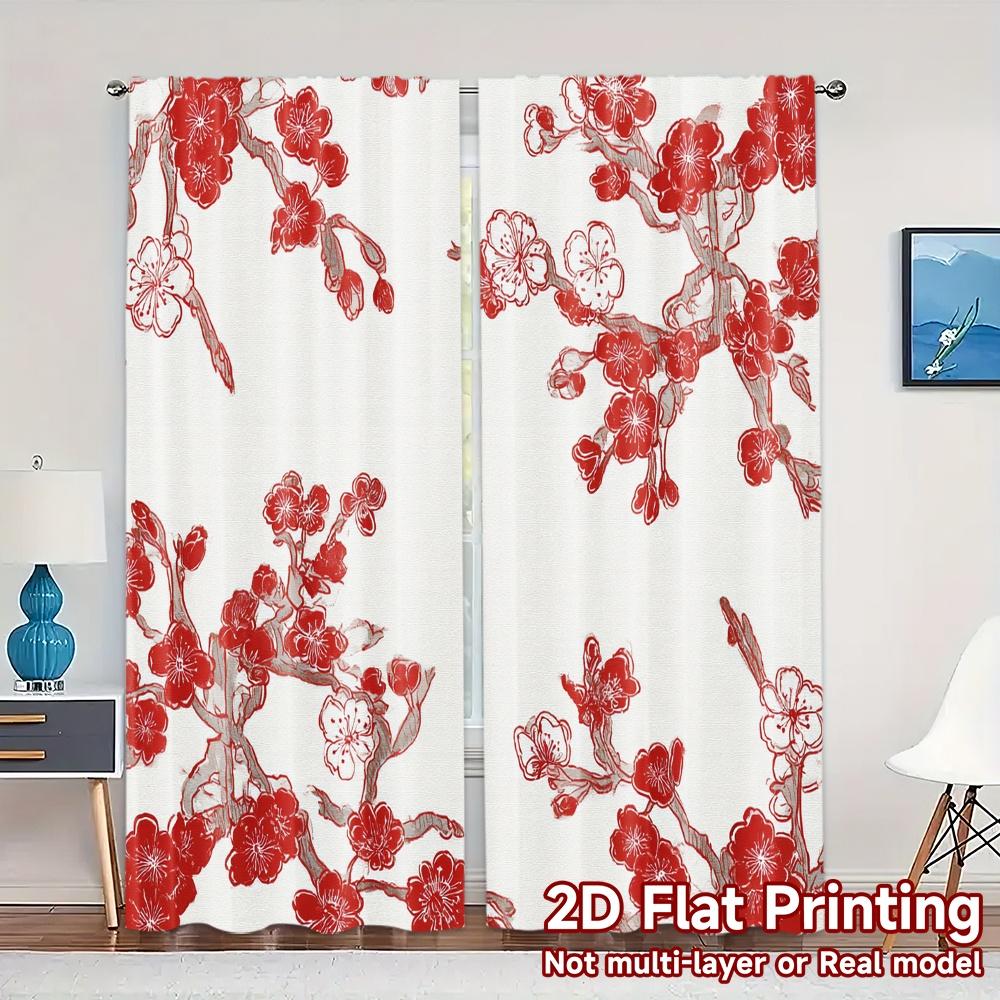 Set Of 2 Flat Printing Jit Curtains Without Rod Blooming Drapes Popular Print Fabric Art Curtain Polyester Machine Washable