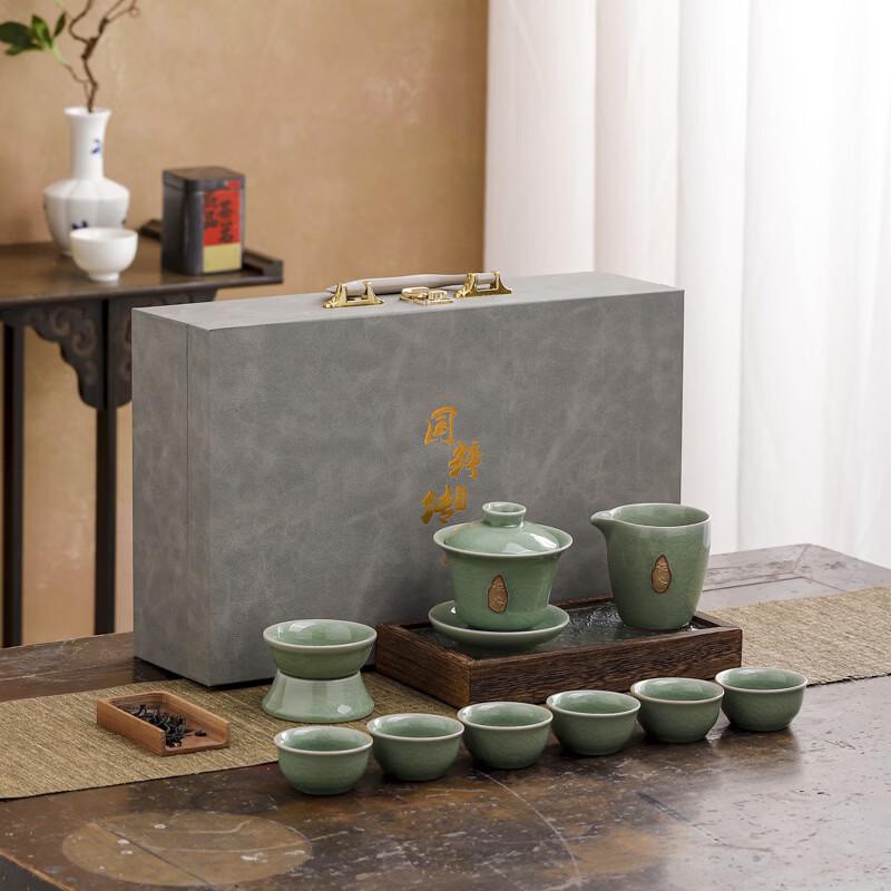 Experience the art of traditional Chinese tea with this exquisite 10-piece Ge Kiln ceramic Kung Fu tea set. Crafted from high-quality ceramic in a classic Chinese style, this set includes a teapot, teacups, and a distinctive gaiwan (lid bowl), all beautifully packaged in a gift box. Perfect for tea enthusiasts or as an elegant present, it's a sophisticated addition to any home.