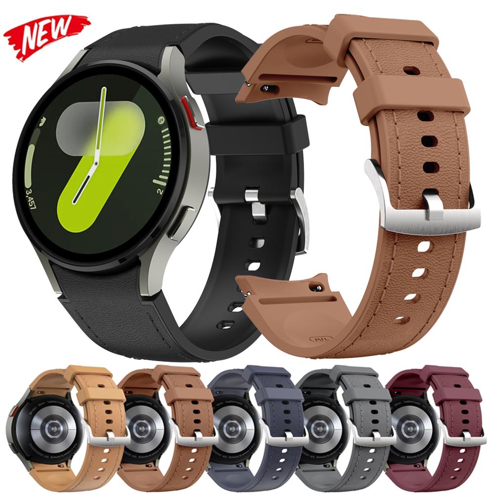 No Gap Silicone+Leather Strap for Samsung Galaxy Watch 7 6 5 4 FE 40mm 44mm Bracelet Wristband Watch 6 4 Classic 43/47mm 42/46mm