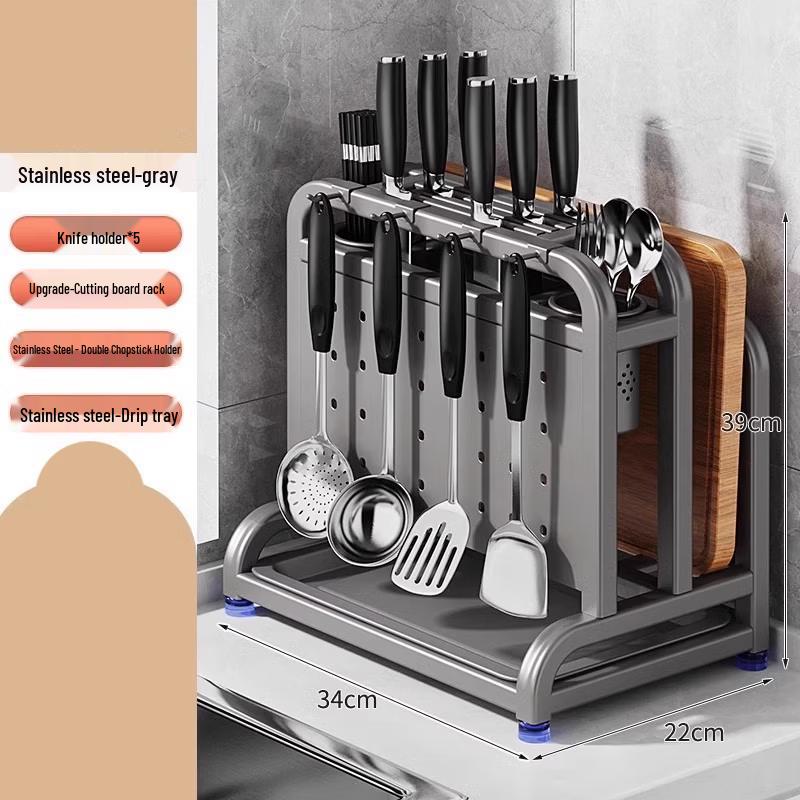 Organize your kitchen essentials with the You Shu Multi-functional Wall-Mounted Kitchen Organizer. Crafted from durable 316 stainless steel with a stylish gun gray electroplated finish, this rack features a convenient suction cup installation, eliminating the need for drilling. Its drainable design keeps your knives, chopping boards, and chopsticks dry and hygienic, blending mid-century style with modern functionality.