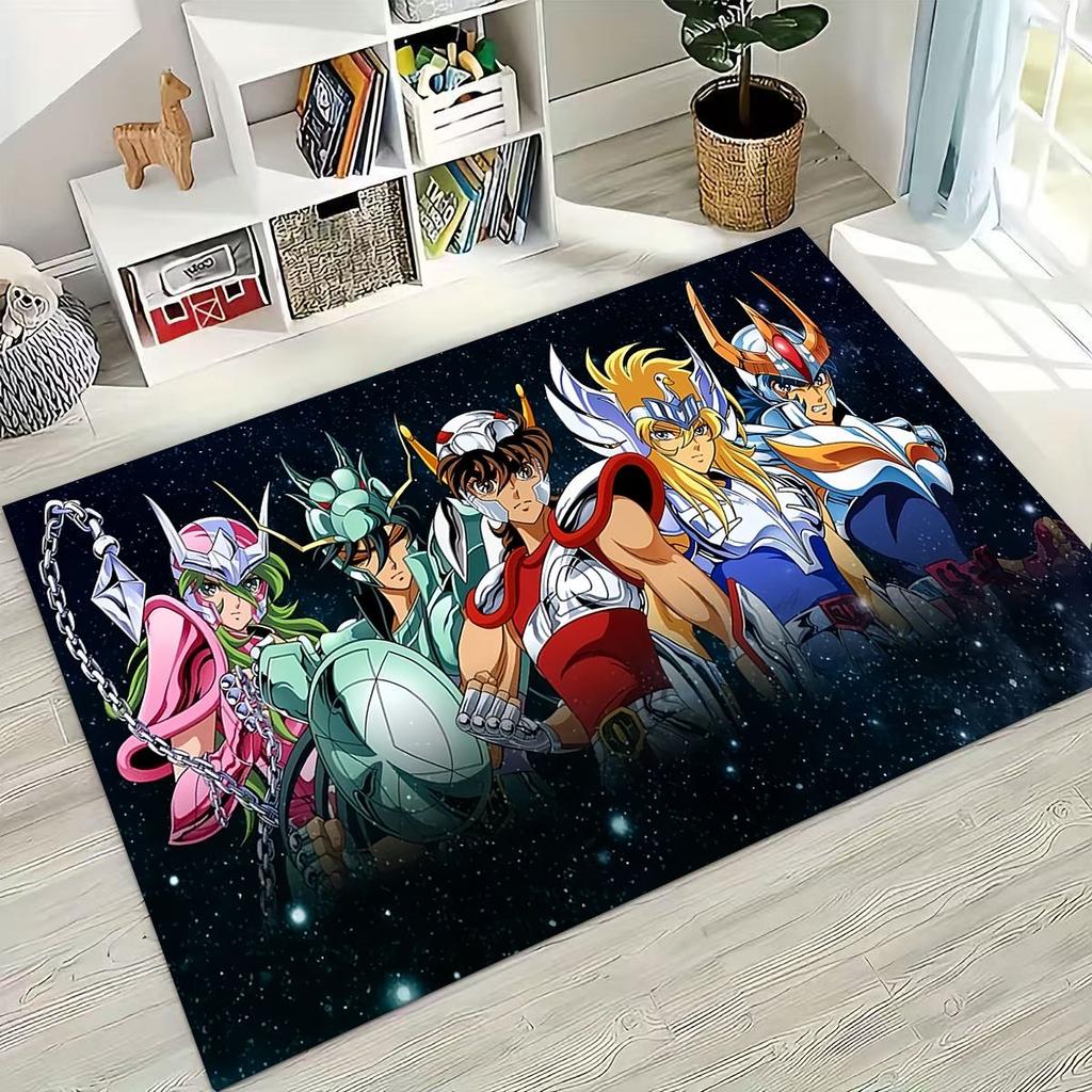 Retro Anime Saint Seiya Gold Saint Cartoon Rug for Bedroom Living Room Sofa Home Doormat Decor,Kids Play Non-slip Floor Mat Gift