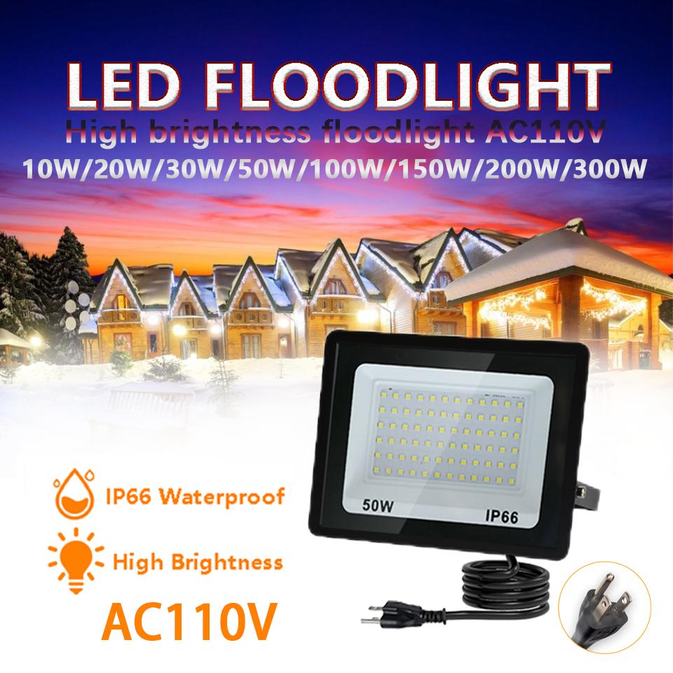 LED FloodLight With Plug Outdoor AC110V 10W 20W 30W 50W 100W Reflector Spotlight Street Light Wall Lamps Garden Lighting Focus