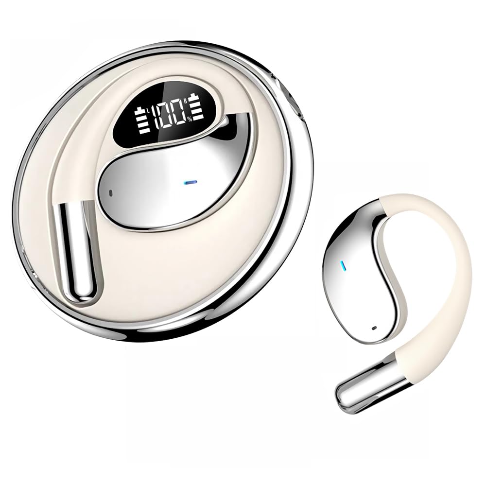 【Liability】 We are not responsible for malfunctions or damages caused by improper use, such as operating the product without a transformer. ---------------------------------------------------------------------- 【Brand New 360° Rotating Case Design】A rotating ring design reminiscent of the golden ratio. The flowing curves and three-dimensional feel are captivating, and the rotating ring-like form draws attention. A new design that is compact yet conveys "sophistication." When worn with the included strap, the earphones become more than just a gadget, but a subtle accent. 【LED Battery Level Indicator】The LED battery level indicator lets you see the remaining power at a glance, so you can quickly check the battery level. You can see the charging status, so you can use it with peace of mind at any time while making calls or playing music. You can find out before the battery gets low, so you can prevent interruptions in calls or music. It has approximately 8 hours of talk time, approximately 8 hours of music playback, approximately 120 hours of standby time, and is fully charged in about 1.5 hours. It is a reliable partner that can be used conveniently anywhere. 【Bluetooth 6.1 Technology & Ultra-Convenient Touch Button Operation】Equipped with industry-leading Bluetooth 6.1 technology, communication speed, range, and stability are dramatically improved compared to previous versions. Issues such as sound skipping, interruptions, delays, and noise during calls have been greatly improved. Furthermore, it features intuitive control functions with tap operation. It can be easily operated with one hand, and a variety of operations can be performed quickly, such as double-tapping to play/pause, triple-tapping to skip/rewind tracks, and long-pressing to answer/end/reject calls. 【Ergonomic Ear-Hook Design】The open-type design that doesn't directly insert into the ear and the three-point support structure of the ear-hook design ensure a secure fit. It's gentle on the ears even during prolonged use, providing comfortable wear without pain. Furthermore, it boasts durability that prevents deformation even with 360° rotation, making it less likely to fall out during exercise or travel. Because it doesn't put pressure on the ears, it prioritizes ear health, and the design ensures that ambient sounds are clearly audible. It's an ideal design that combines comfort and safety. 【HiFi High-Quality Sound & ENC Noise Reduction】These over-ear wireless earphones feature a large 14.2mm driver for overwhelmingly high-quality sound. They maintain a perfect balance from low to high frequencies, reproducing crystal-clear sound. The large diaphragm and oxygen-free copper multi-track voice coil reproduce a balanced and rich sound. Furthermore, the ENC noise cancellation function suppresses background noise and ambient sounds during calls, providing a comfortable calling experience where you can clearly hear the other person's voice. The open-type design, which doesn't block your ears, allows you to experience an immersive feeling like you're at a live concert. [2026 New Model - New Charging Case Design] Open-Ear Wireless Earbuds with Rotating Case and Ring, Air Conduction Bluetooth 6.1 Instant Connection, ENC Noise Cancellation, Microphone, LED Battery Level Indicator, Type-C Fast Charging, IPX5 Waterproof, Up to 120 Hours Standby Time, Suitable for Commuting, Web Conferencing, Running, iOS/Android Compatible, Beige