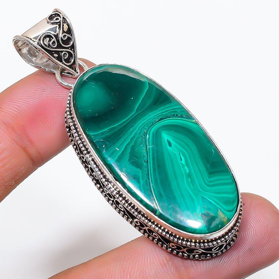 Natural Malachite Gemstone 925 Sterling Silver Jewelry Pendant 2.60" AP-14335