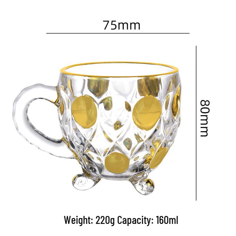 This elegant imported glass cup features a Nordic light luxury design, perfect for living rooms and daily household use. Its unique eight-character handle and refined gold-painted details add a touch of sophistication to your beverage experience.