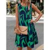 Women's Navy Blue Zebra Print Sleeveless Shift Dress Round Neck Loose Fit Casual Summer Mini Dress