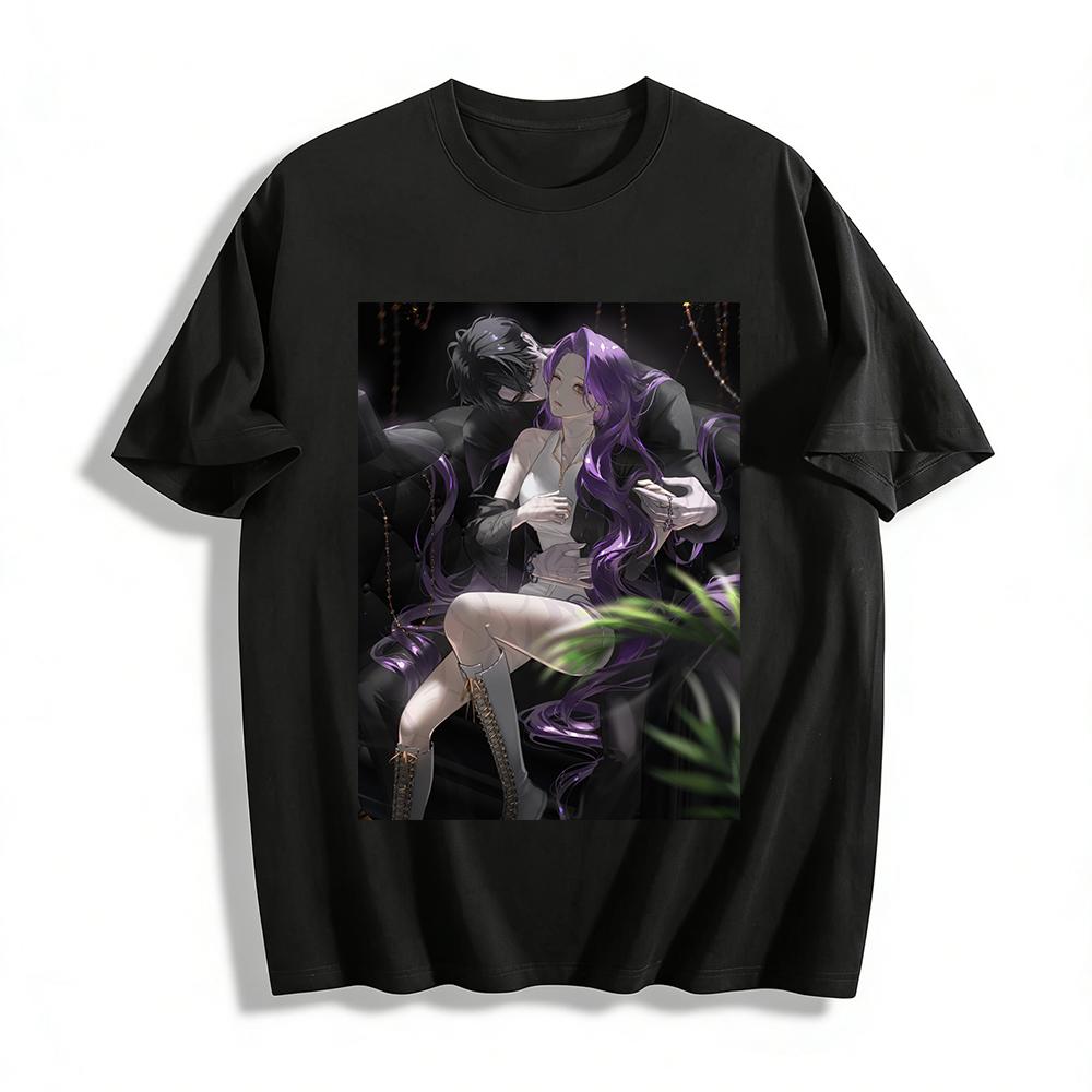 Gangster Style Hugging Couple Print T-shirt Dark Anime Style Loose Casual Top For Men Women Pure cotton T-shirt