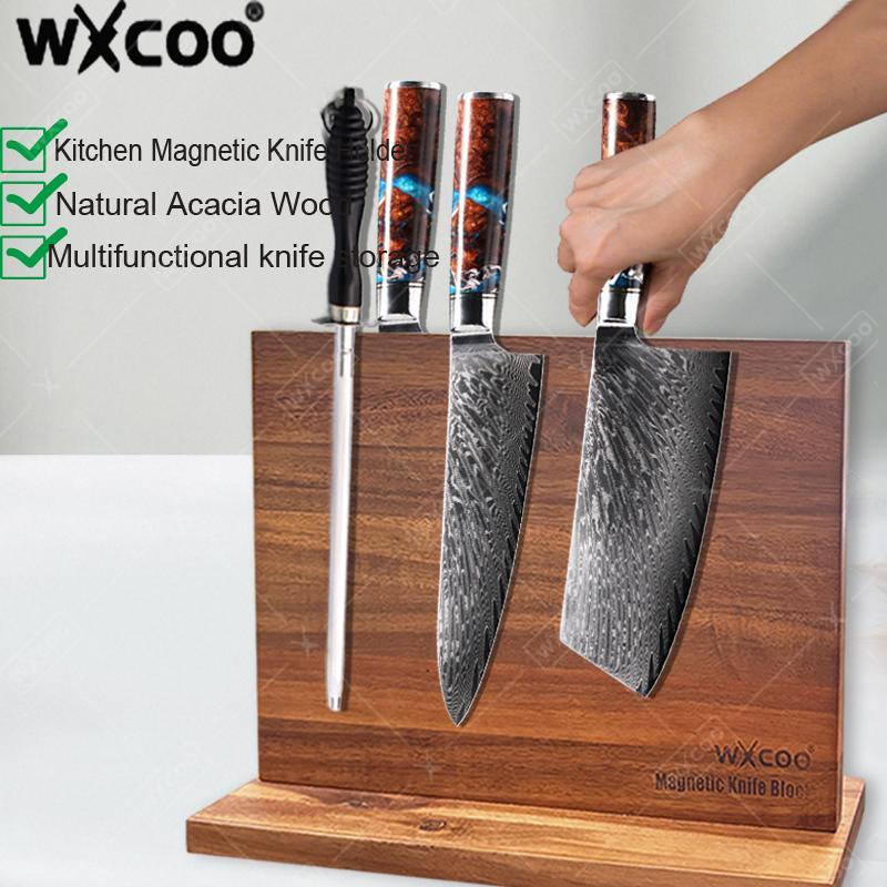 Multifunctional Magnetic Knife Holder Kitchen Knife Block Storage with Enhanced Strong Home Magnetic Stands Acacia Wooden