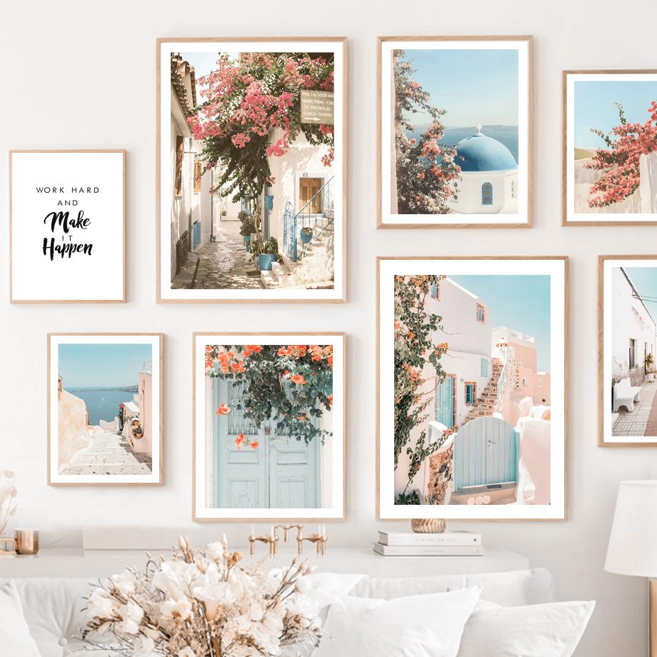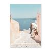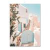 נוף ים כחול תכלת טירת סנטוריני אמנות קיר ציור קנבס פוסטרים והדפסים נורדיים תמונות קיר לעיצוב הסלון