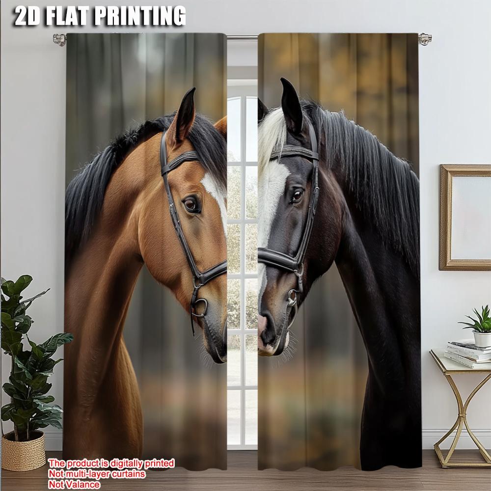 Set Of 2 Minimalist Curtains Print Charming Couple Horse Versatile Fabric Without Rod Festive Ldeal Bedroom Various Curtain Polyester Perfect For