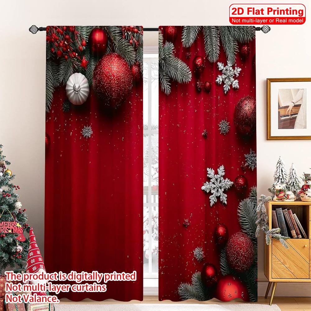 Set Of 2 Flat Printing Fashionable Christmas Curtains Pine Branches Snowflakes Digital Printed Polyester Drapes Spring Curtain
