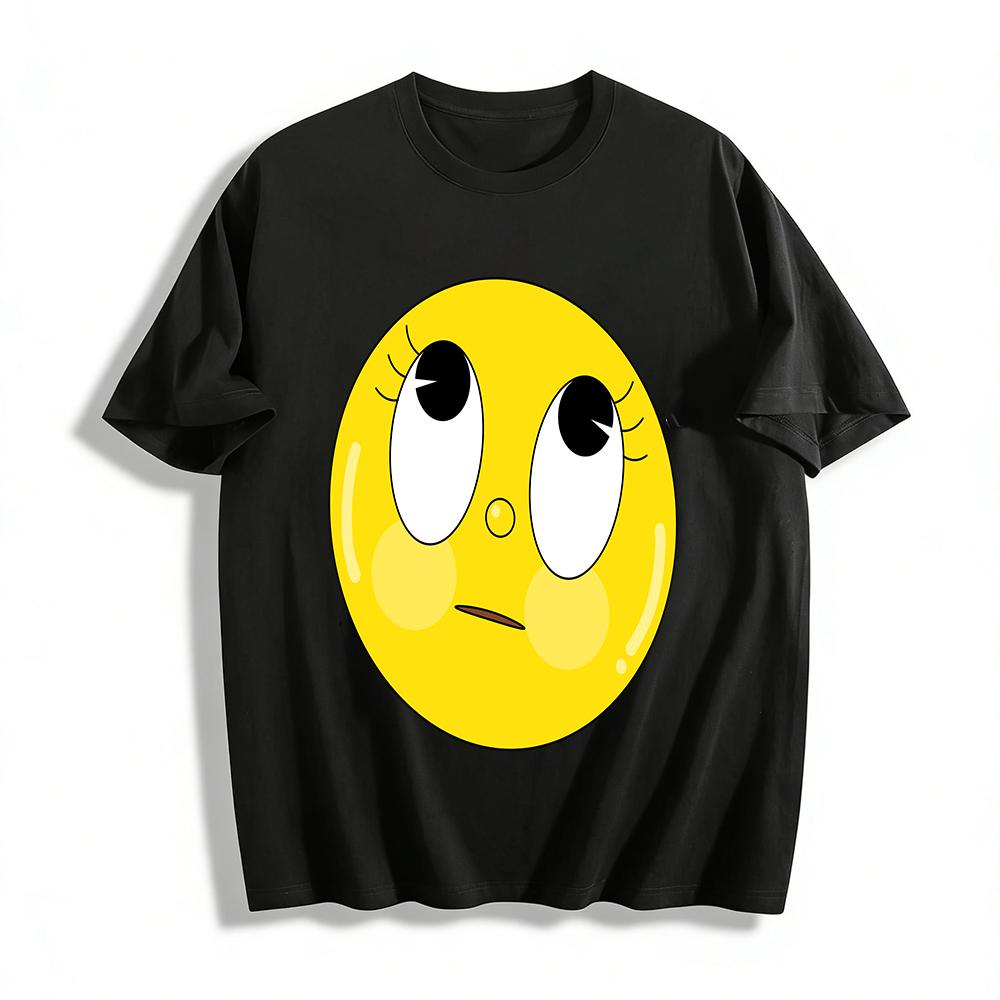 Cute Big-eyed Round Face Print Casual T-Shirt for Adults and Kids Loose Comfortable Top for Daily Commute Pure cotton T-shirt
