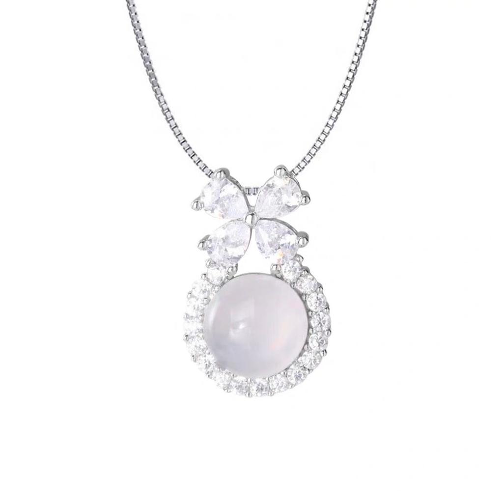 2026 Ice Clear White Chalcedony Pendant Necklace Female Agate Exquisite Light Luxury Premium Sense Small Fragrant Clavicle Chain
