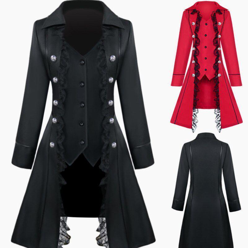 Autumn Wish Popular Medieval Solid Long sleeve Three Breasted Female Outwear Irregular Top Coat Women