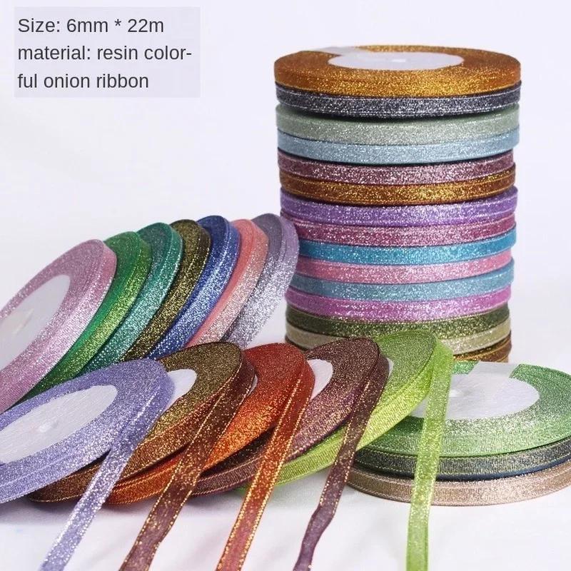 25Yards 6mm Multicolor Silk Satin Organza Ribbon Glossy Glitter Ribbon Wedding Cake Gift Decoration Crafts Garment Accessories