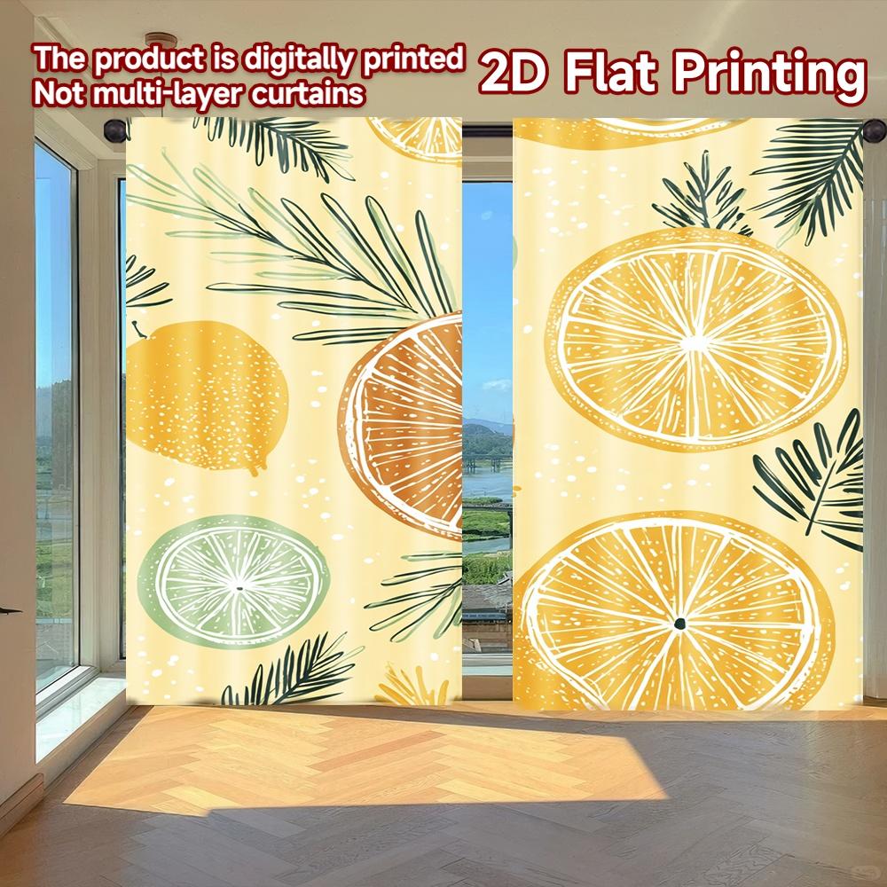 Set Of 2 Flat Printing Curtains Without Rod Fruit Leaf Design Valentine Is Day Festival Creative Durable Curtain Made Polyester