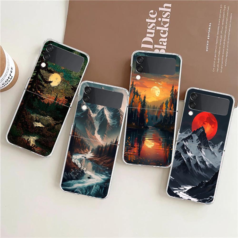 Phone Cover For Samsung Galaxy Z Flip 6 5 4 Case Transparent For Samsung Z Flip 3 Hard PC Foldable Shell Mountain Forest Capas