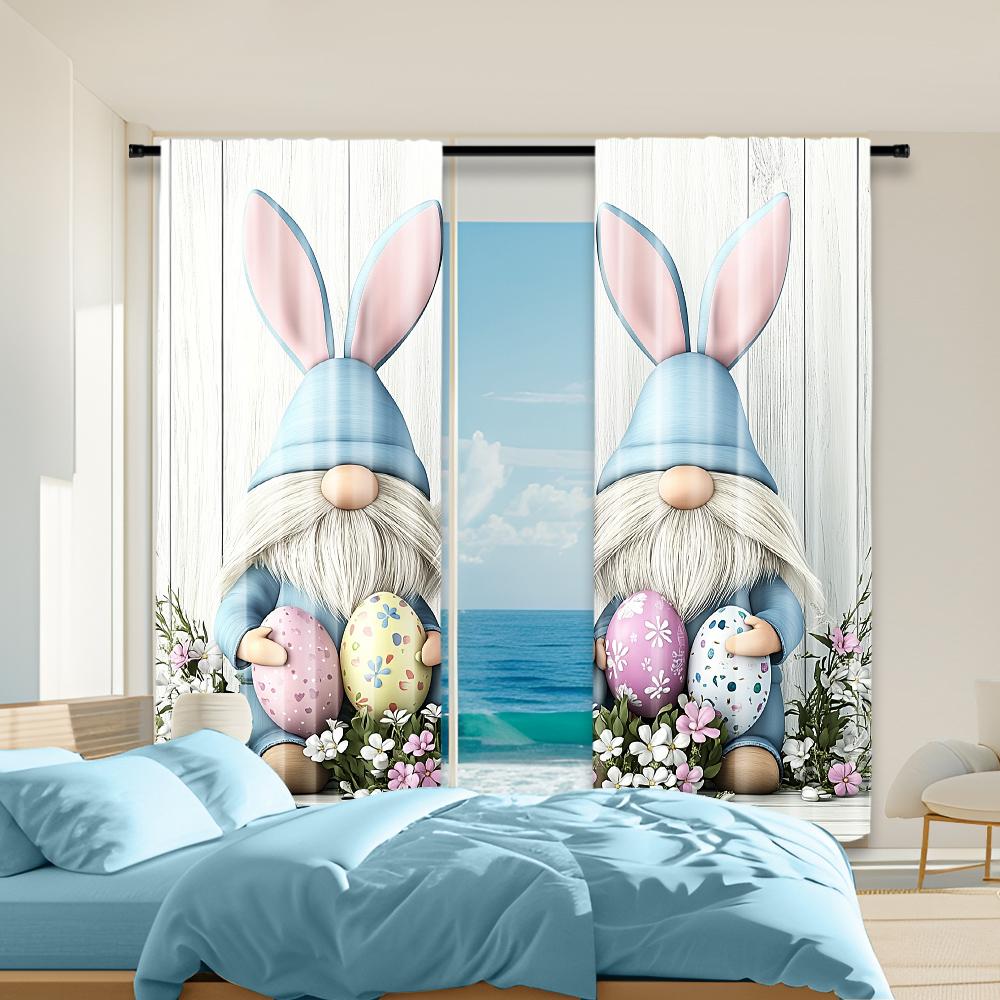 Set Of 2 Easter Egg Gnome Rabbits Printed Window Curtain Bedroom Office Kitchen Living Room Study Rod Hole For Great Made Polyester