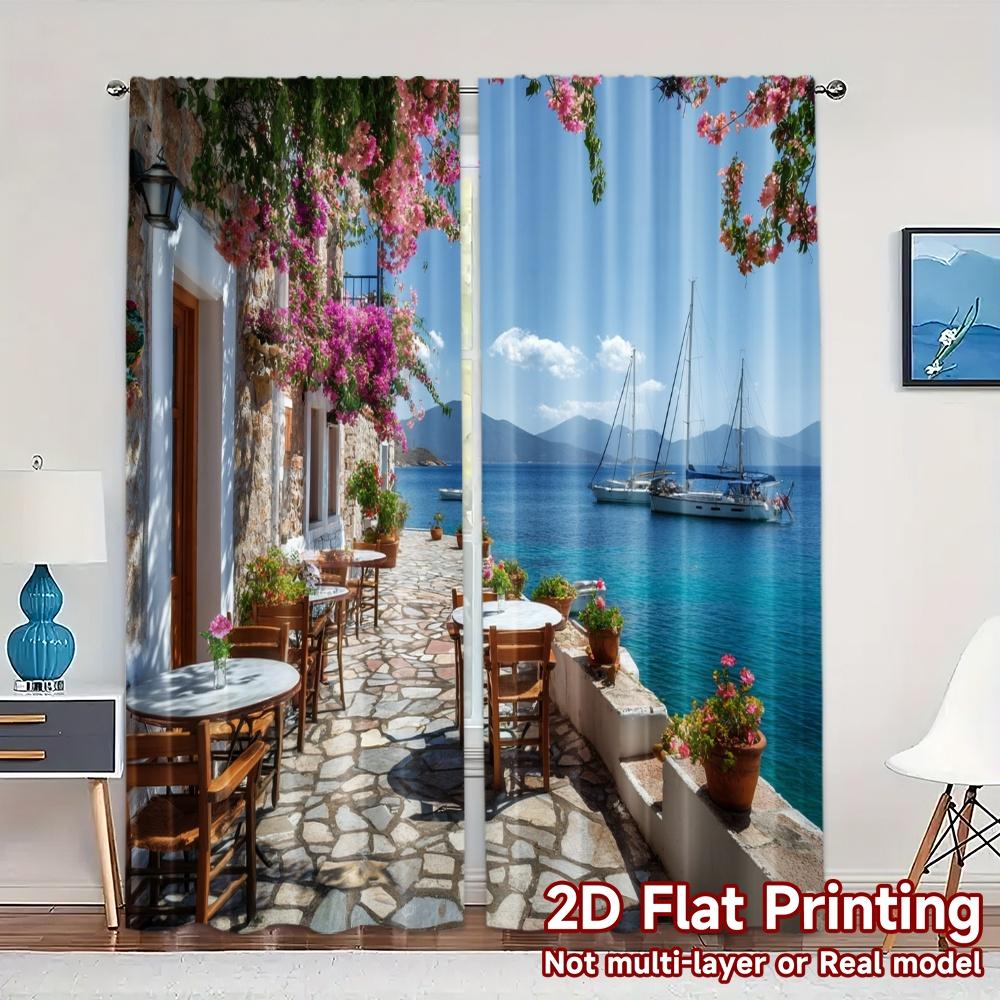 Set Of 2 Modern Flat Printing Curtains Without Rod Seaside Serenity Window Treatment Versatile Durable Polyester Curtain Made