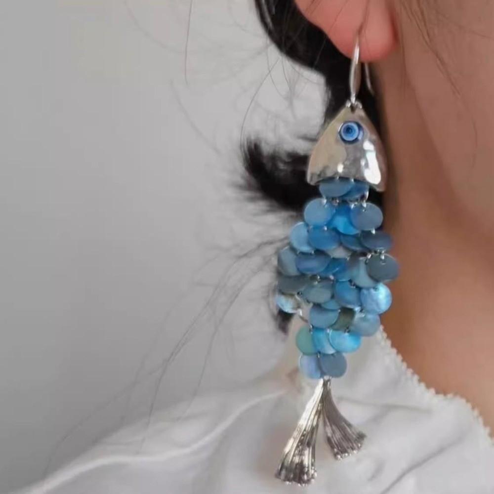 Personality Fish-shaped Earrings Scaly Dangle Earrings Imitation Shell Tassel Earrings Festival