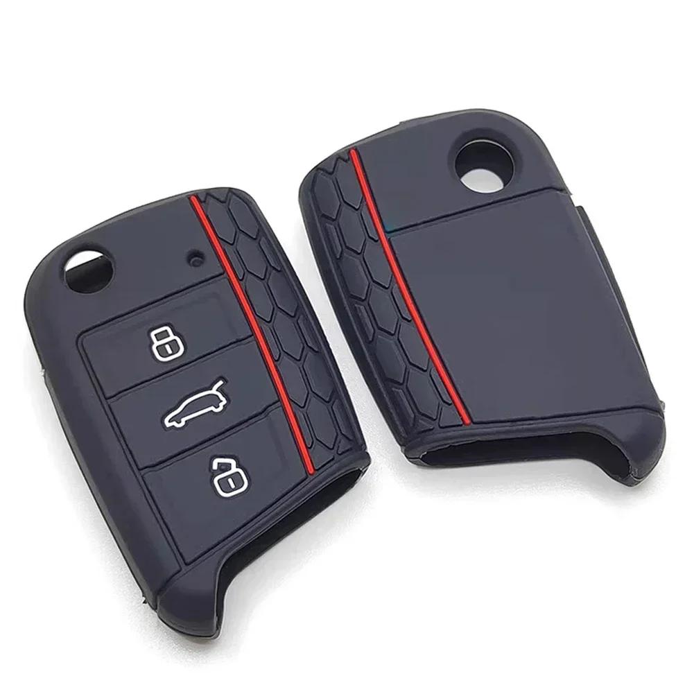 Silicone Car Key Cover Case For Volkswagen VW Golf 7 Polo Tiguan Kodiaq Karoq mk7 Skoda Octavia A7 SEAT Leon Ibiza Fob 3 Buttons