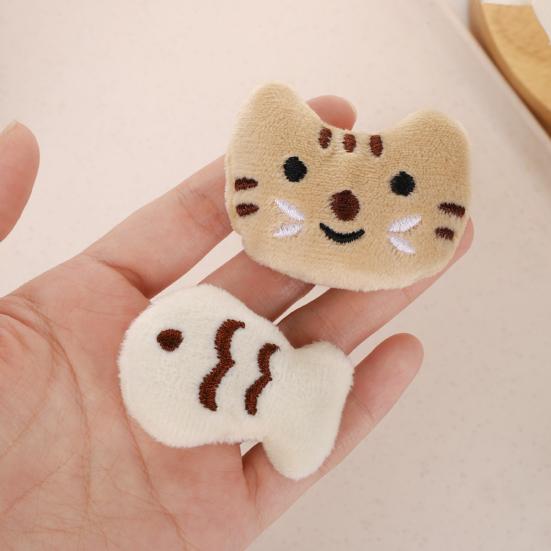 4Pcs Girl Hairpin Mini Plush Kitty Fish Design Secure Hold Hair Clip Side