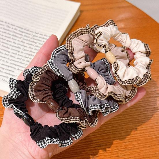 5Pcs Hair Ties High Elasticity Double-Layer Plaid Lace Seaming Hair Ropes Retro French Style Soft Fabric Hair Accessories